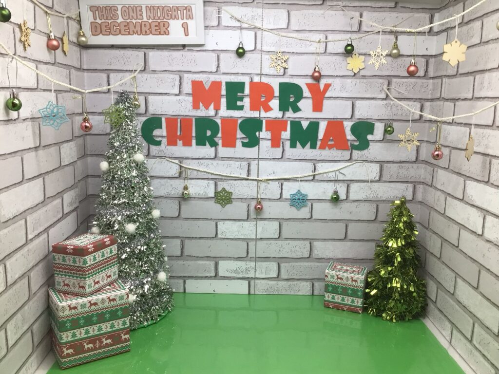フォトブースの背景がクリスマスバージョンにかわりました\(^o^)/